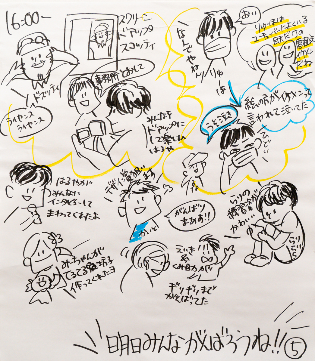 プロモーションではなく参加者のための記録なので「良い部分だけを抜き出さない」ということ意識して描いています。ポジティブな面だけでなく、不安な気持ちや葛藤する姿も記録します。失敗したことも、上手にできなかったことも本人にとっては大切な経験だからです。なので、何がその場で起こっているのか、どんな情報が参加者に必要なのか、参加者が過ごした時間を丁寧にすくい上げて、見て、考えて、描くことが大切だと改めて思いました。
