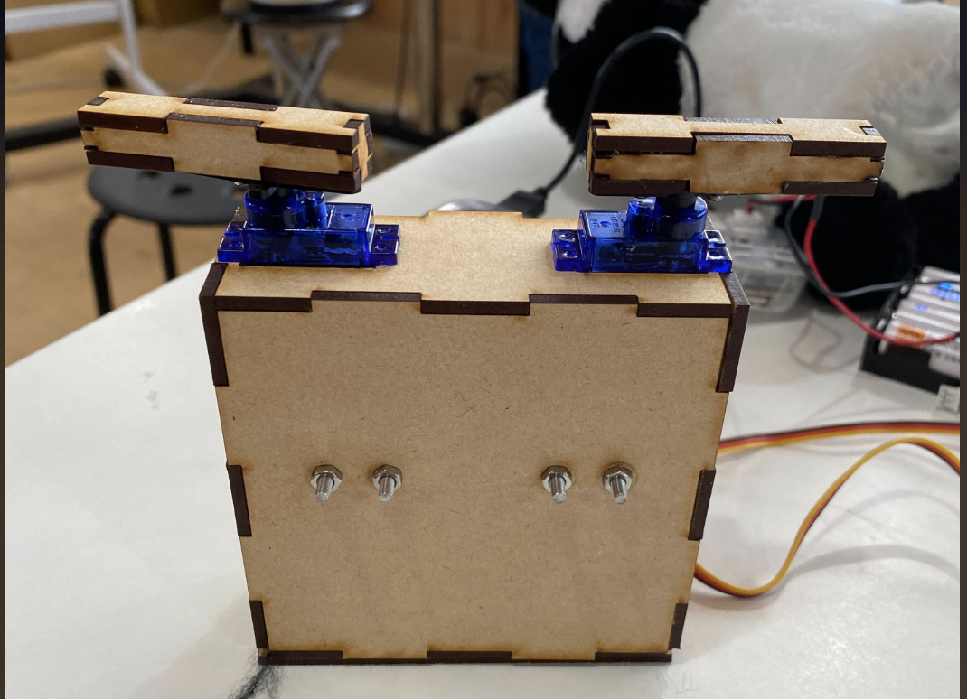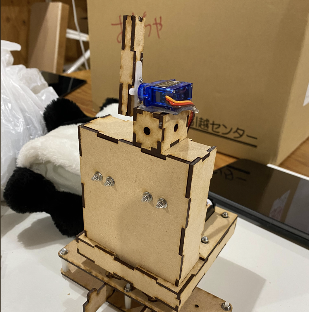 そしてこちらがパンダ(首振りver.)の中身!!サーボ1台で、前後にヘッドバンギング!!