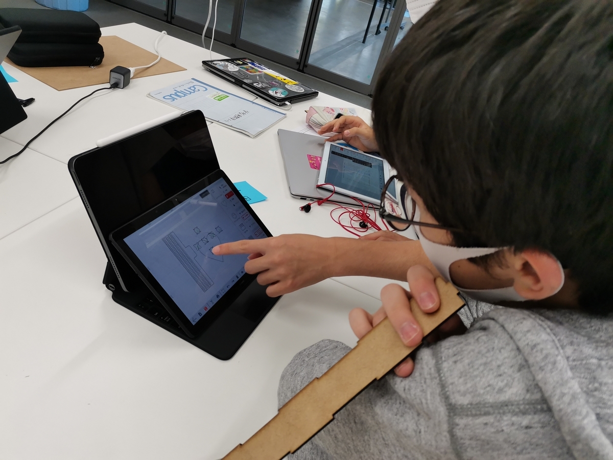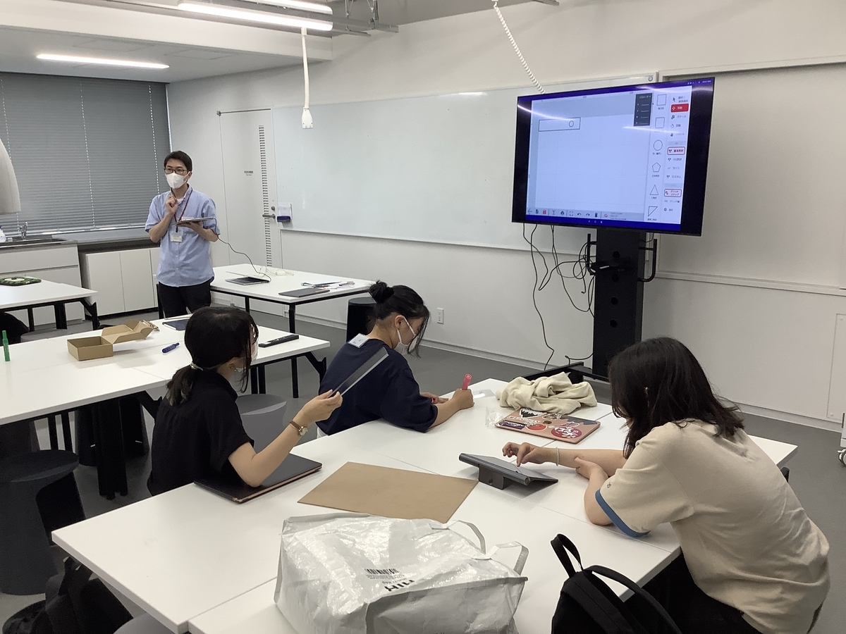 授業としては2コマを通しでおこない、前半はVIVIWARE Shellの使い方のレクチャーとアイデア出し、後半は実際に製図とレーザーカッターでの切り出しに取り組みました。