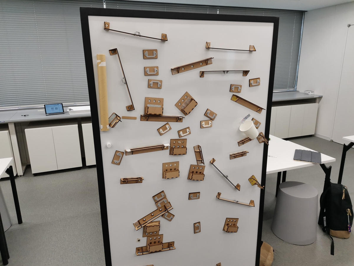 早速、アイデア出しです。自分が作ったピタゴラ装置の動画を振り返ったり、実際に使ったレールを見たりしながら、改良点を考えます。