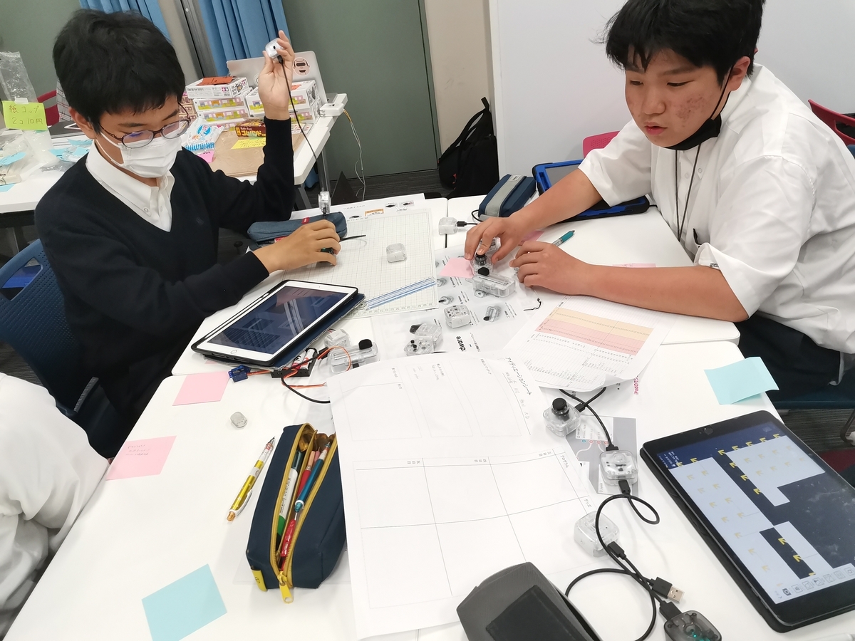 初回はVIVIWARE Cellの使い方に慣れてもらうための時間です。といっても1年次には別のGILでVIVIWARE Cellを使用したロボット製作体験をしていたり、2年次には理科の授業の中で使用していたりということで、基本的な使い方については特に問題なくスムーズに進行しました。