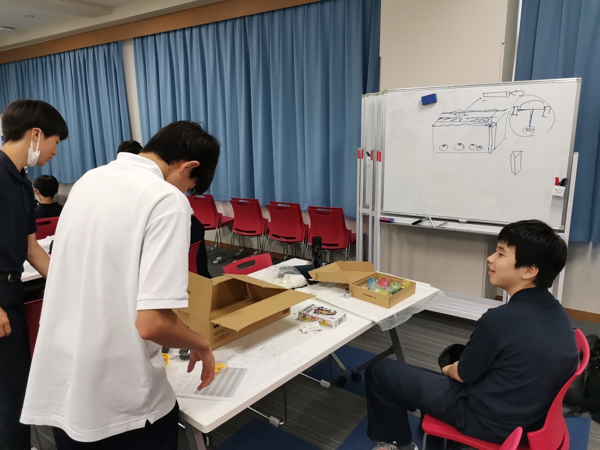 最終日は発表会です。グループを2つに分け、片方のグループが運営、もう片方のグループは遊ぶ、それをある程度遊んだところで交代します。 また、発表会には中学1年生も招待していたので、彼らも遊びに来てくれました。